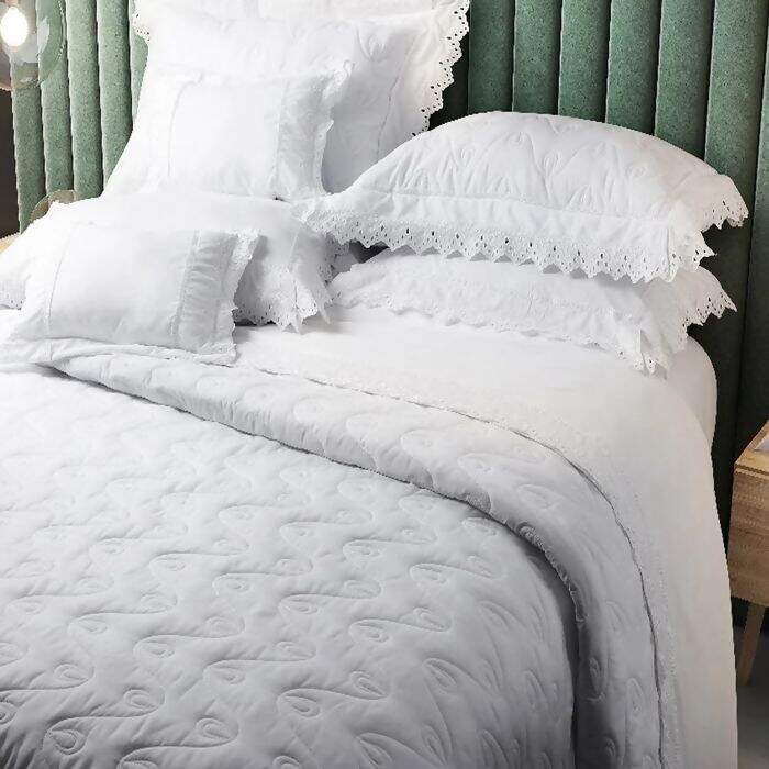 Kit Colcha Angeline Bordada Branca Casal 5pç - Lumiére Marken Fassi