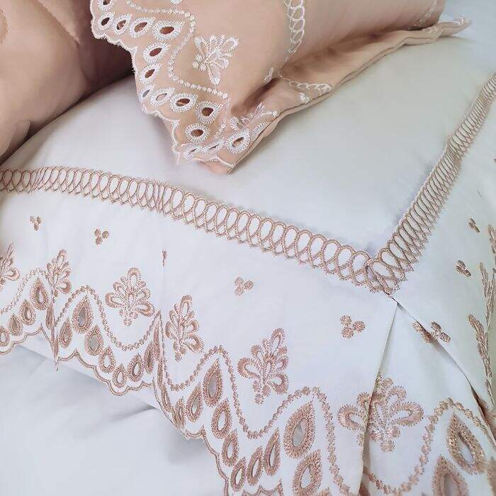 Kit Colcha Angeline Bordado Branco com Rosa Casal 5pç - Lumiére Marken Fassi