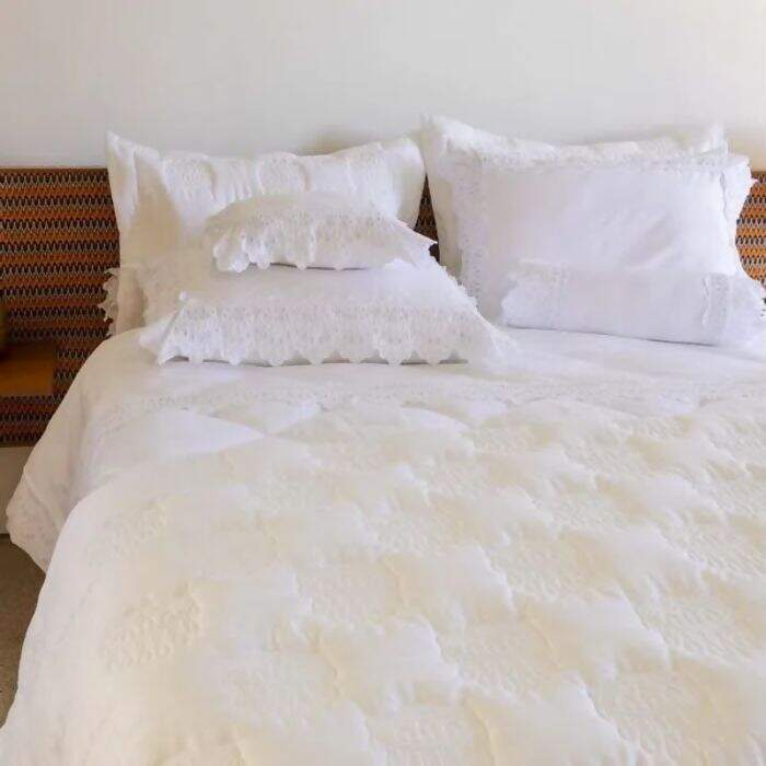 Descrição Kit Colcha Bordada 400 Fios La Hoya Branca 11 pçs Super King - Artelassê
