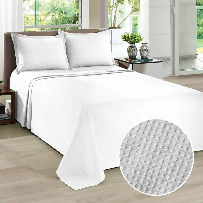 Kit Colcha de Piquet Lisa Branca Casal 3pc com Porta 220 x 250 - Dohler