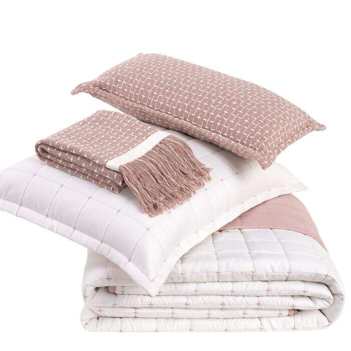 Kit Coordenado Diana Rosê / Palha 4 Peças Solteiro – Lavive