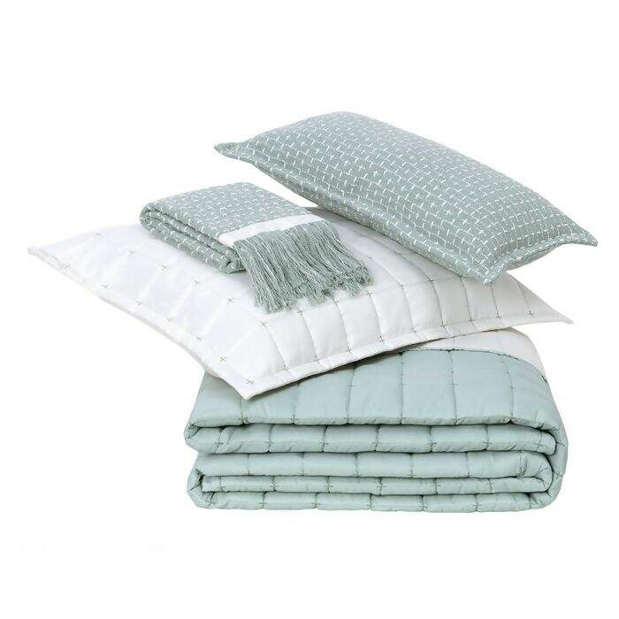 Descrição Kit Coordenado Diana Verde Malva / Palha 5 Peças Casal – Lavive