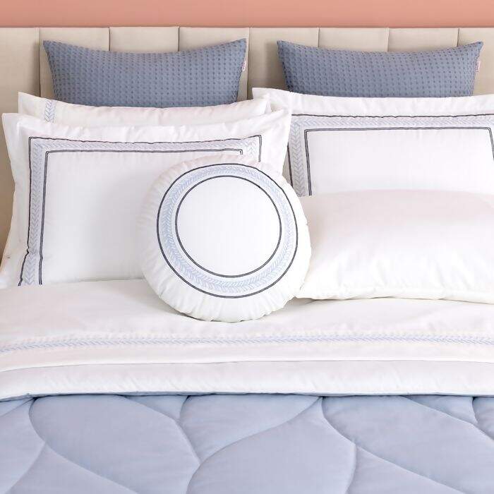 Descrição Kit Coordenado Marbella Azul Micropercal 400 Fios Queen - Lavive