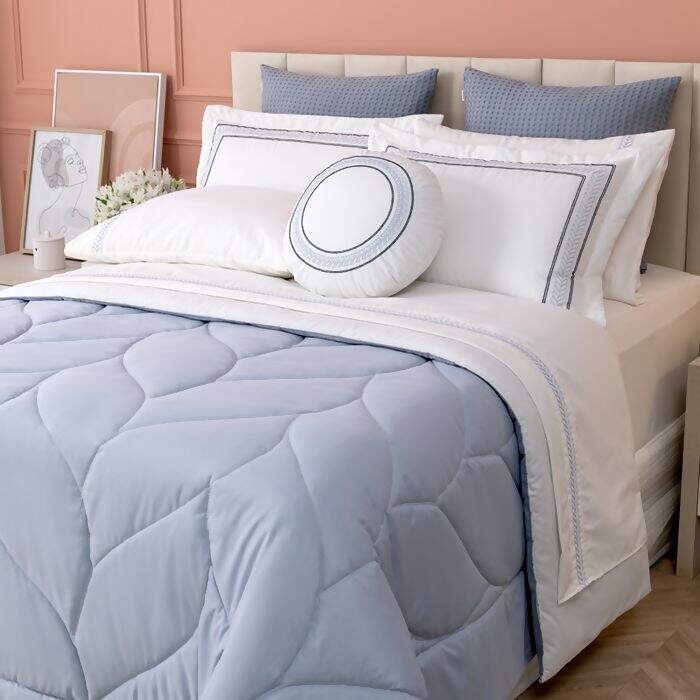 Kit Coordenado Marbella Azul Micropercal 400 Fios Queen - Lavive