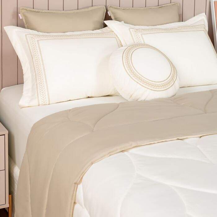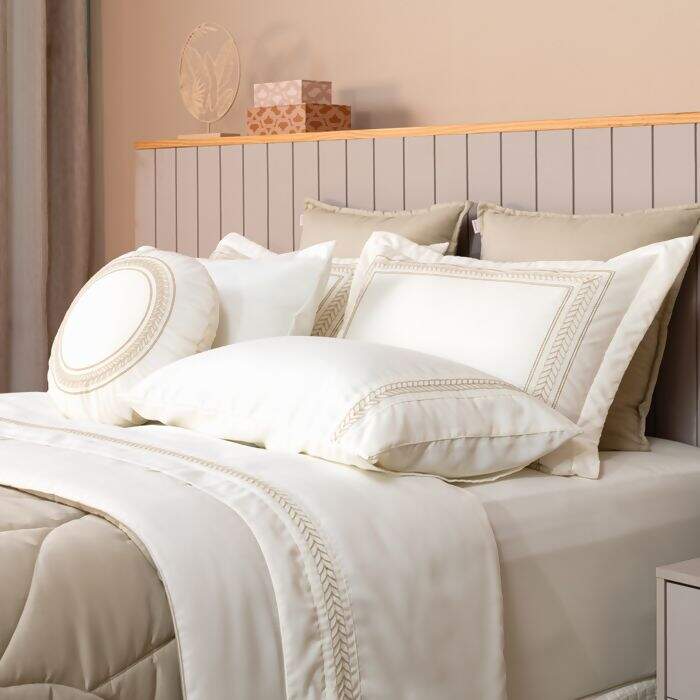 Kit Coordenado Marbella Bege Micropercal 400 Fios Queen - Lavive