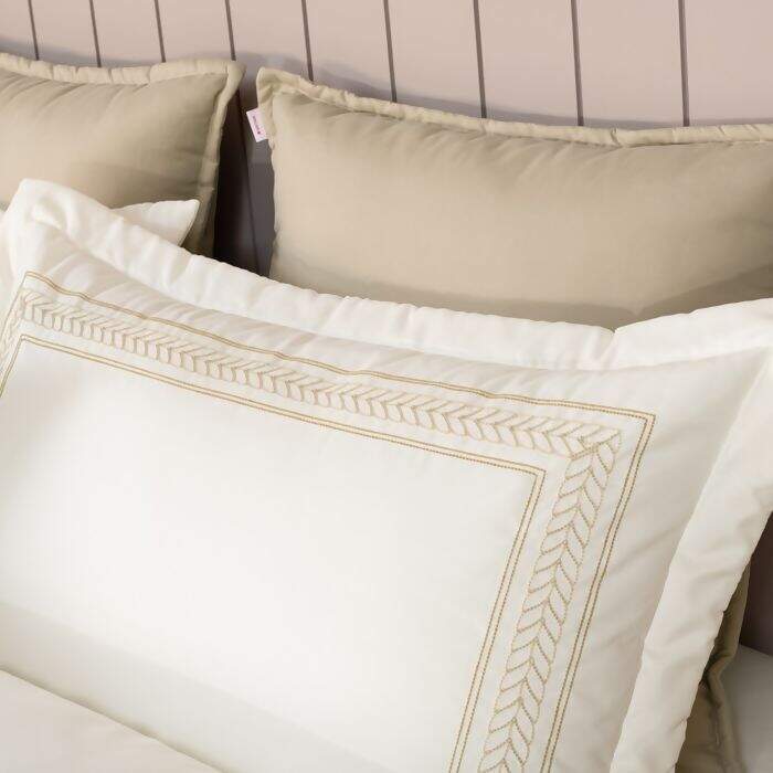Descrição Kit Coordenado Marbella Bege Micropercal 400 Fios Queen - Lavive