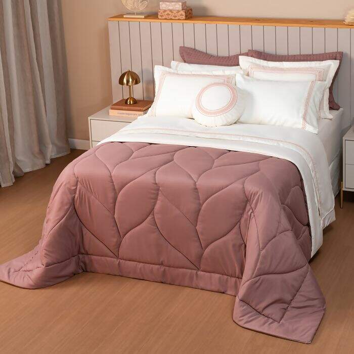 Kit Coordenado Marbella Rosa Antigo Micropercal 400 Fios Queen - Lavive