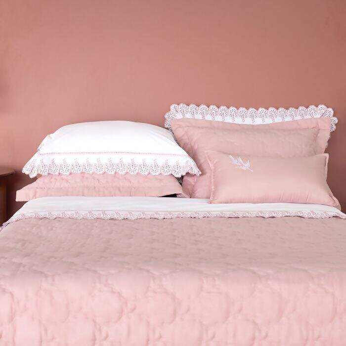 Laise elegante, matelassê sutil, cobre leito com dobra feita e almofadinha bordada, a Coleção Reali tem tudo o que você precisa em um só produto para deixar a cama completa e sofisticada.
