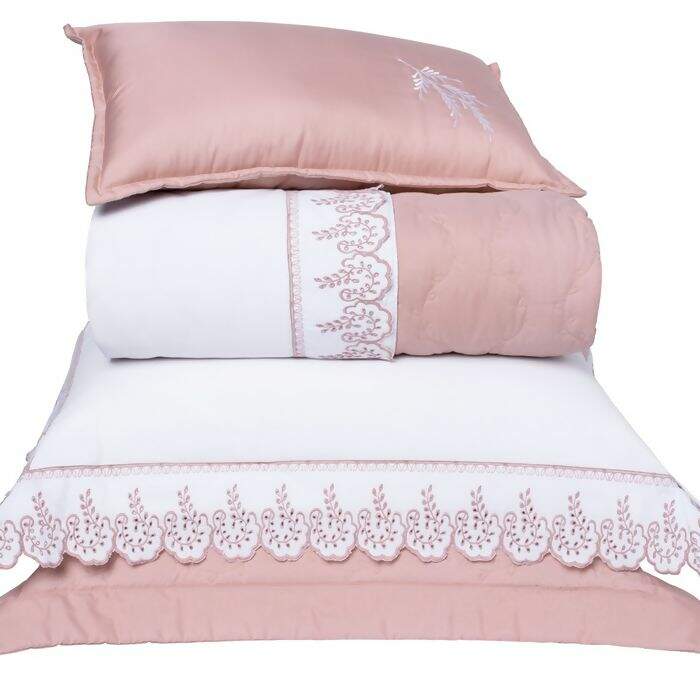 Kit Coordenado Reali Rosê 6 Peças Queen com Vira Doblo - Lavive