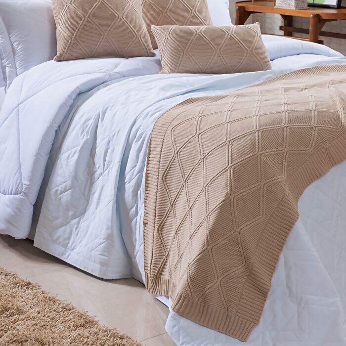 As Peseira de Tricot são itens atemporais, que mesclam com as cores e texturas da sua cama de forma a valorizar e enriquecer todo o ambiente. Coordene também com as Almofadas e Rinzeiras que compõem a coleção.