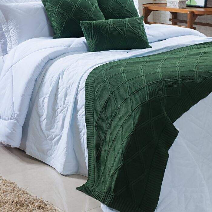 Descrição Peseira de Tricot Toronto Verde King 70 x 270 - Dommun