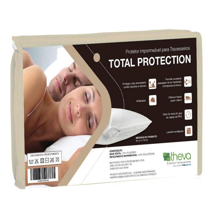 Descrição Protetor de Travesseiro Total Protection Impermeável 50 x 70 cms - Theva