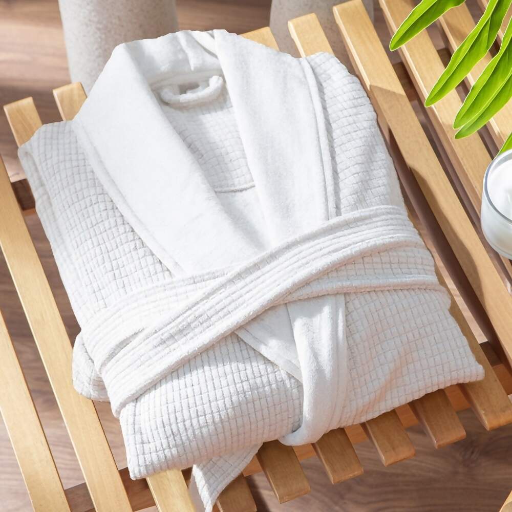 O Roupão D’luxe combina duas experiências de toque em uma única peça. Do lado interno, a textura supermacia com acabamento aveludado envolve a pele com delicadeza e aconchego — ideal para momentos de puro bem-estar. Já o lado externo apresenta uma textura com pequenos quadradinhos em relevo, que confere um visual elegante e contemporâneo, elevando a peça e valorizando a experiência de quem veste. Para completar, o roupão conta com cinto para ajuste ao corpo, garantindo conforto, praticidade e caimento perfeito. Feito para quem aprecia conforto aliado ao design, o D’luxe transforma o pós-banho em um instante de cuidado, estilo e suavidade.
