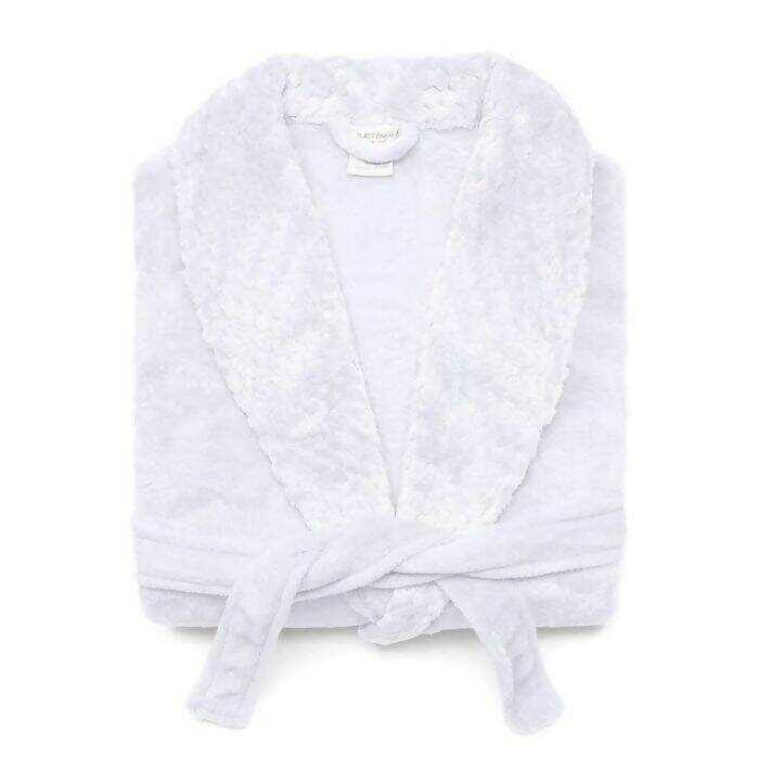Roupão Feminino Flannel Fleece com Manga e Gola Xale Branco - Buettner