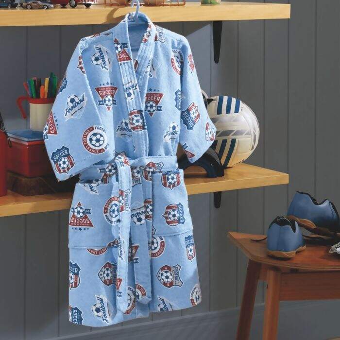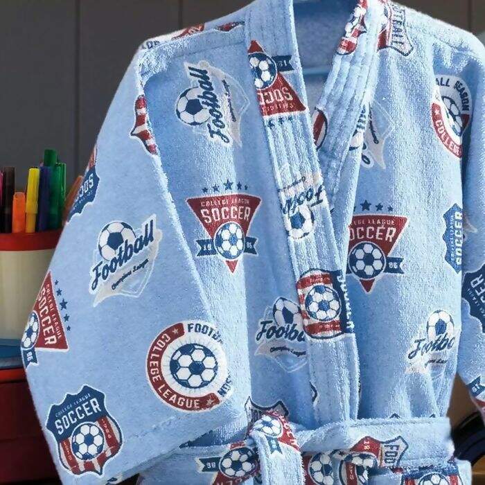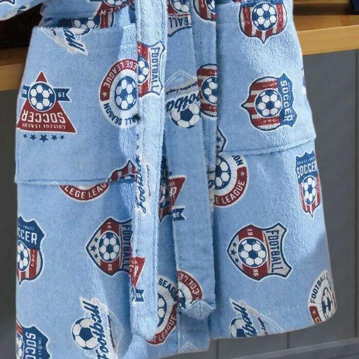 Descrição Roupão Infantil Felpudo Azul Futebol 02 - Dohler