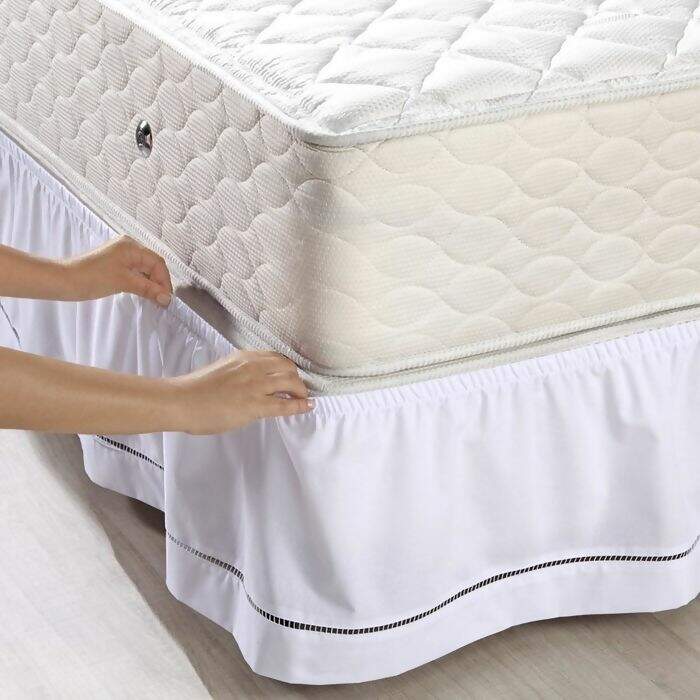 Mais praticidade na hora de mudar! Nem precisa tirar o colchão para vestir a saia Ponto Palito, ela vem com um elástico que facilita a colocação. Além de funcional, ela conta com acabamento em ponto palito que deixa a decoração do quarto para lá de clássica.