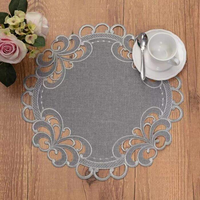 Sousplat / Toalha de Bandeja 2 pç Bordada Rechillie Prata 38 cms - Argivai