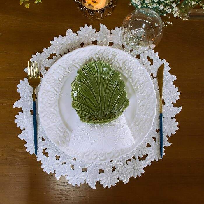 - Pode ser usado tanto como toalha de bandeja quanto como jogo americano redondo Sousplat.