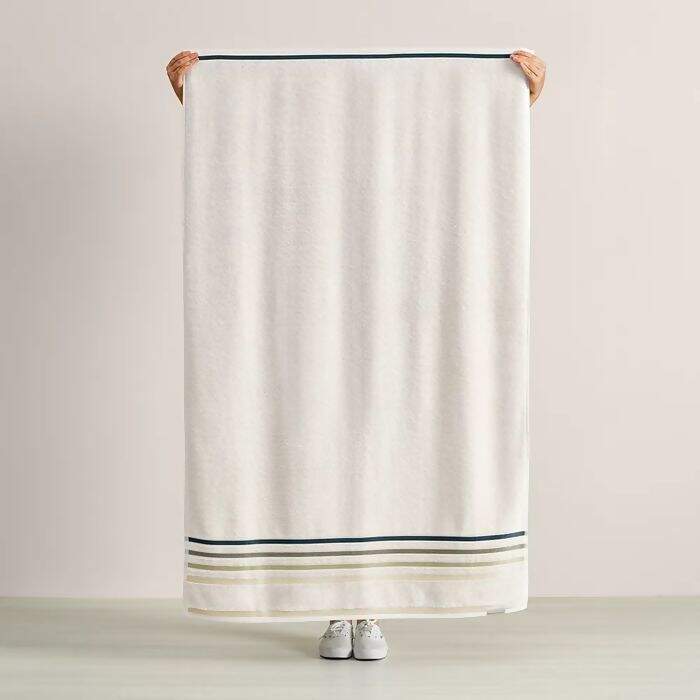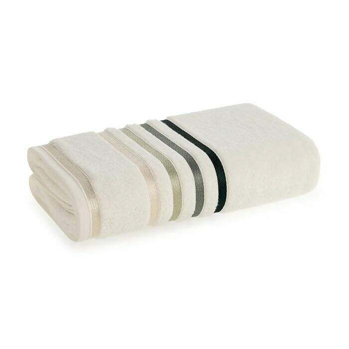 Toalha Banho Karsten Fio Penteado Max Lumina 500 gr/m² Marfim com Verde 70 x 140 cms - Karsten