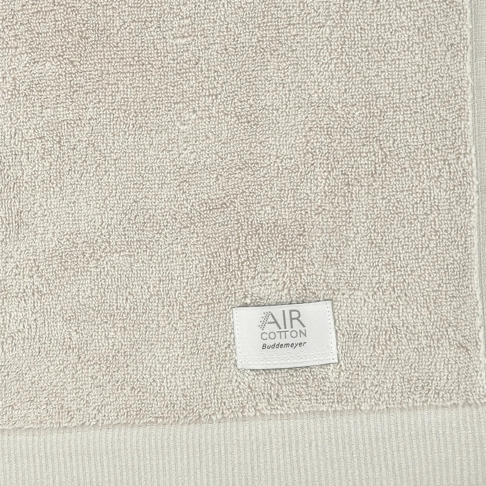 Com um diferencial único de duplo toque, duas sensações em uma mesma toalha; um blend especial da Buddemeyer. Um dos lados com fios de baixa torção que proporcionam super maciez e do outro lado com fios e acabamento de alta performance Air Cotton é um novo conceito em toalhas de banho. Volumosa, extremamente macia e surpreendentemente leve. Por ser aerada, tem altíssima hidrofilidade mantendo a naturalidade do toque da pluma de algodão. Inigualável e sustentável, os produtos com tecnologia Air Cotton trazem mais praticidade para o seu dia a dia.
