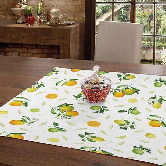 Toalha para mesa decorativa com acabamento especial Döhler Clean, que protege e permite limpar facilmente, basta passar um pano de imediato.