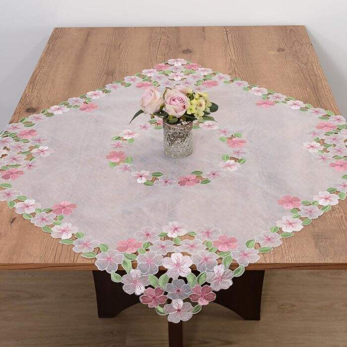 Descrição Toalha de Chá Bordada Jardim 85 x 85 cms - Argivai