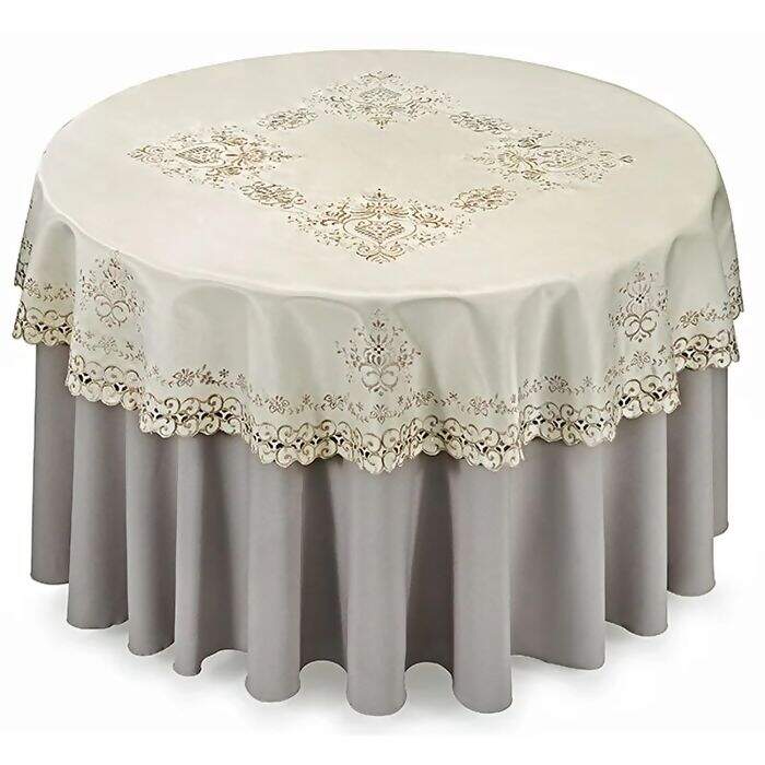 Toalha de Mesa Bordada 1438 Bege Redonda 220 cms - Rafimex