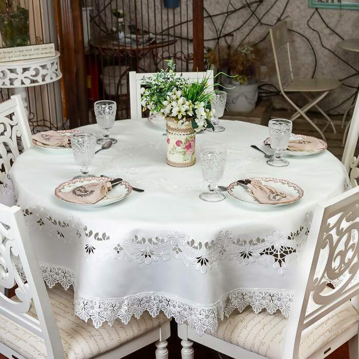 Toalha de Mesa Bordada Piquet Branca Redonda 180 cms - Argivai