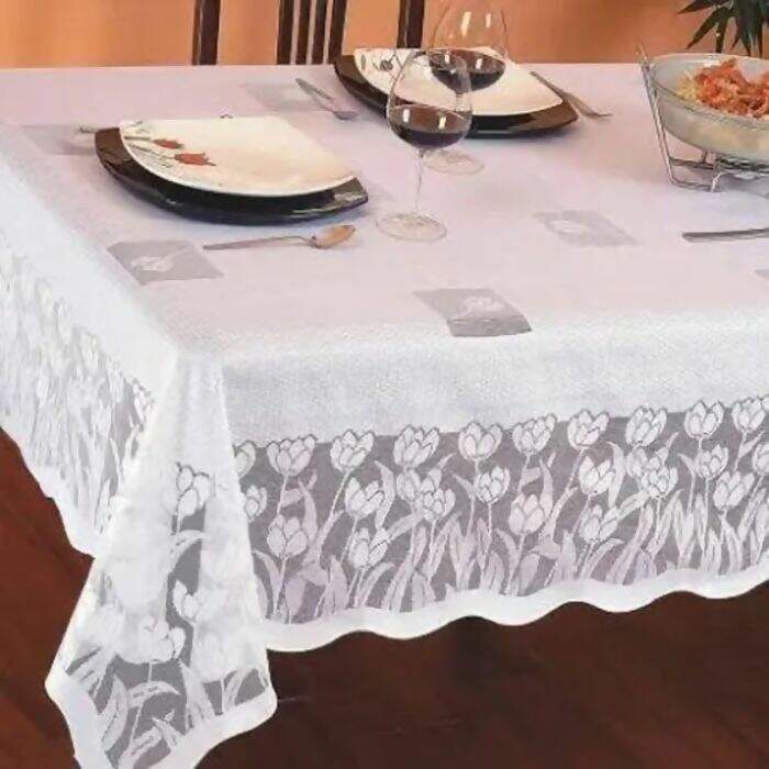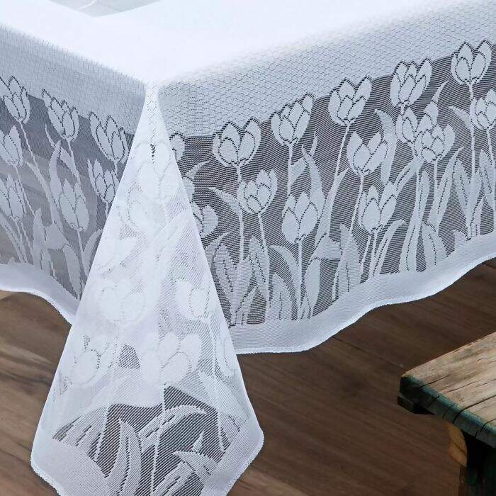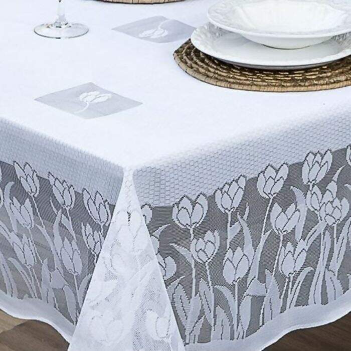 Descrição Toalha de Mesa Rendada Tulipa Branca Quadrada 220 x 220 cms - Rendhac