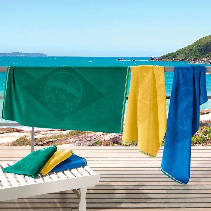 Leve o espírito brasileiro para a praia ou piscina com a incrível Toalha de Praia Jacquard Bandeira Buettner. Com cores vibrantes e design único, ela conta um lindo acabamento aveludado, um maravilhoso toque no corpo e um ótimo poder de absorção. Confeccionada em 95% Algodão e 5% Poliéster (barra), a Coleção Bandeira pode ser encontrada em três opções de cores: Azul Bic, Ouro e Verde Esmeralda. Produto com a qualidade Buettner, a marca de Cama, Mesa e Banho mais querida do Brasil.
