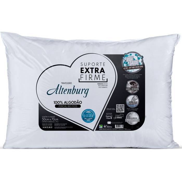 Descrição Travesseiro Suporte Extra Firme 180 fios Branco 50 x 70 cm - Altenburg