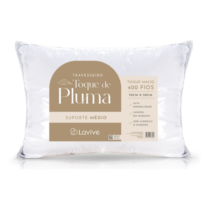 Travesseiro Toque de Pluma 400 Fios Suporte Médio 50 x 70 - Lavive